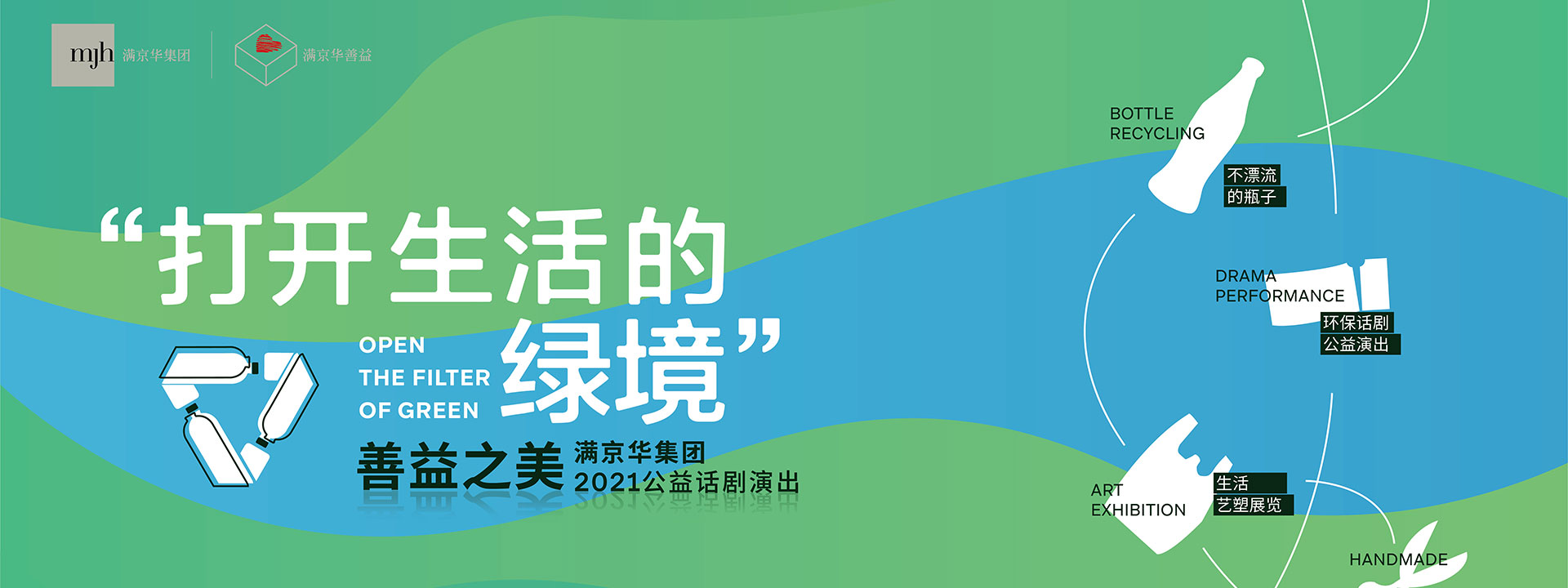2021年1月9日,滿京華集團主辦的“善益之美——打開生活的綠境”2021公益話劇演出在位于寶安沙浦的滿京華·iADC設計博物館正式開幕。 此次活動由滿京華集團攜手網易公益聯手打造,聚焦環保議題,通過原創公益話劇、環保藝術展覽、舊物改造手工坊及塑料瓶回收計劃等系列活動倡導綠色生活,號召大家從自我做起,通過減少、回收、再利用的方式,降低塑制垃圾的產生,為環保出力。