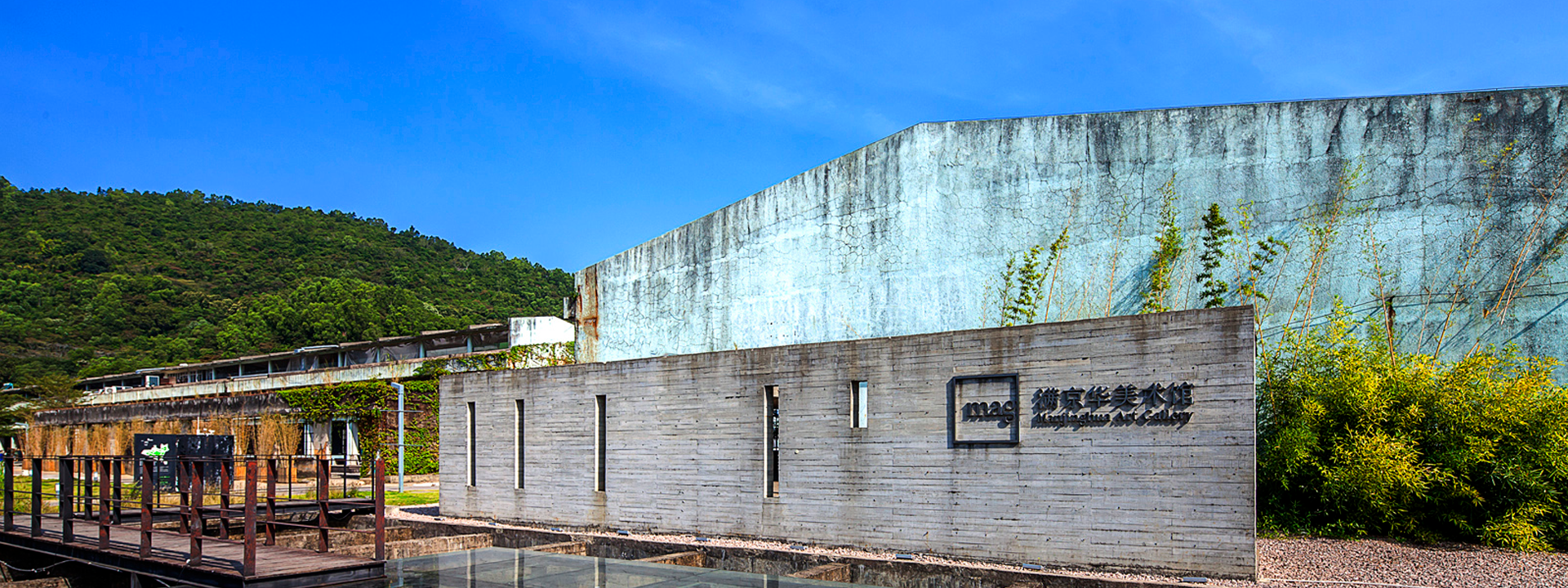 滿京華美術館的前身為鴻華染印廠的整裝車間,新的建造體獨立生長于原始的內地坪之上。主展廳被懸置在廠房空中的黑色鋼盒體,保留原廠房空間的采光排風結構,為展廳提供柔和的頂光。通過混泥土的間隔,將美術館首層空間分成不同功能的模塊,包括前臺、入口展廳、階梯大廳、藝術商店和可以靈活間隔的多功能空間。首層空間與戶外景觀相連,營造一個流動的半戶外空間敘事,連接藝術與自然、驛動與寧靜。
